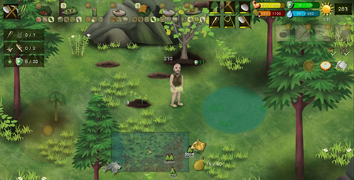 前期营地可以建在小水潭附近哦,合理饮用小水潭,因为第二天就会变成石头,不过不要紧,在小地图里,你往下走远一点遮住石头在回来,小水潭就变回来了。地图我印象中是有6个水潭,大家可以自己选择合适的地方定居。