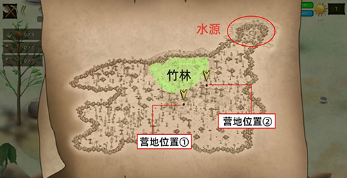 前期营地可以建在地图的中间或者是水源的附近,这样寻找物资和喝水比较方便。