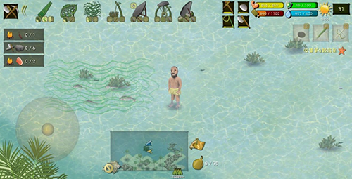 海岛老是有椰子蟹在跑,没事的时候可以主动抓点椰子蟹来充饥,以防陷阱没有抓到猎物。拿竹叉对准椰子蟹的阴影部分会比较容易打中。