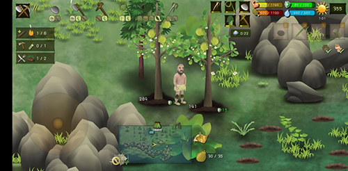 2、建好营地以后就出去找材料顺便找吃的,边找边吃,晚上回去就做工具做陷阱。