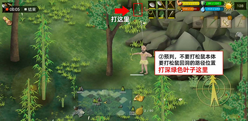 ②预判,不要打松鼠本体,要打松鼠回洞的路径位置
