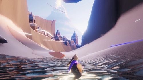 霞谷旅程的终点,是一座王国遗落的环形竞技场,落日的照耀之下,仿佛昭示着这里的过往。尽管美丽,却显得有些许苍凉。在这里,你将遇见王国的双子“先祖”。两人手持长矛竞技,他们所展示的画面,似乎诉说着王国对抗黑暗的历史。
